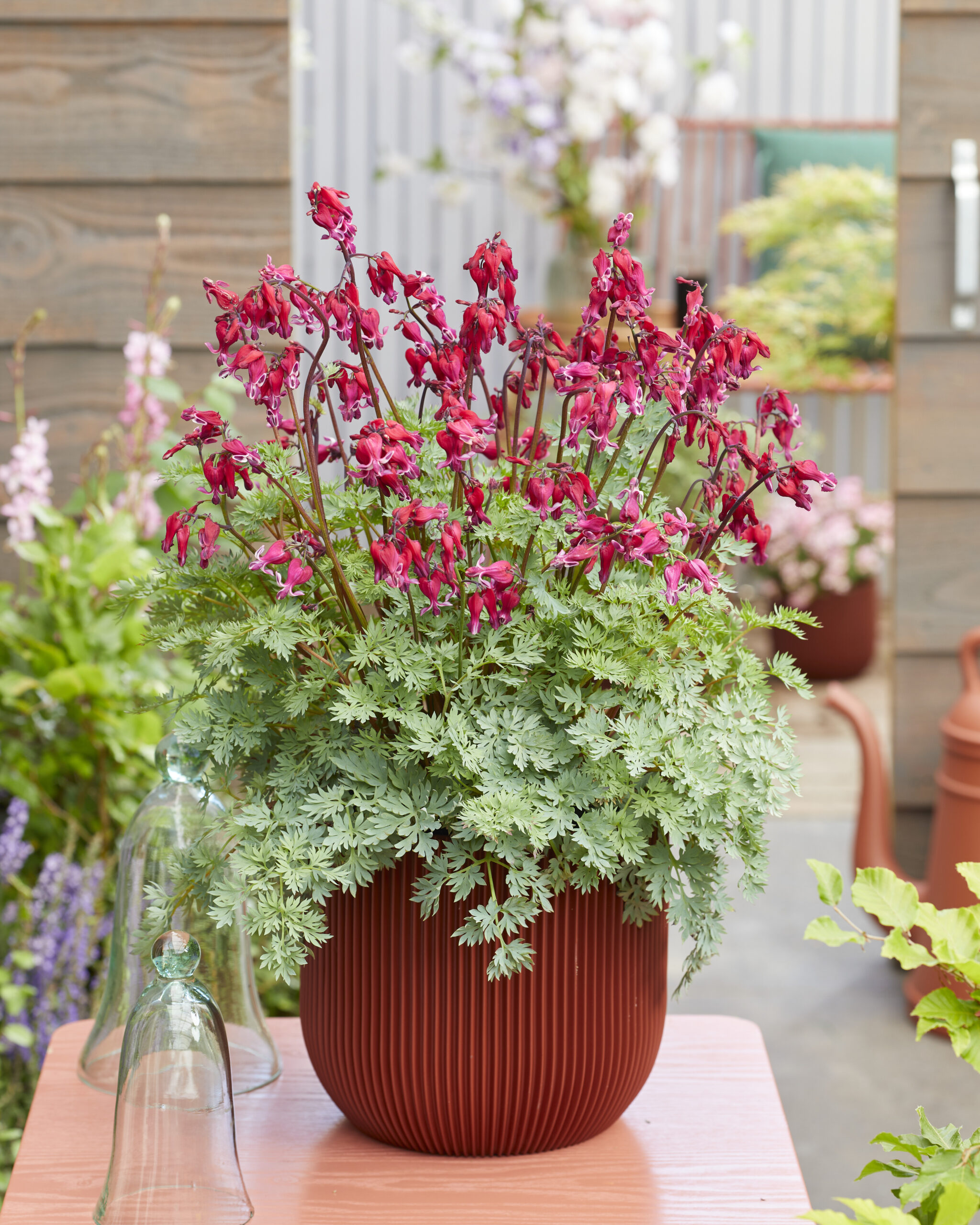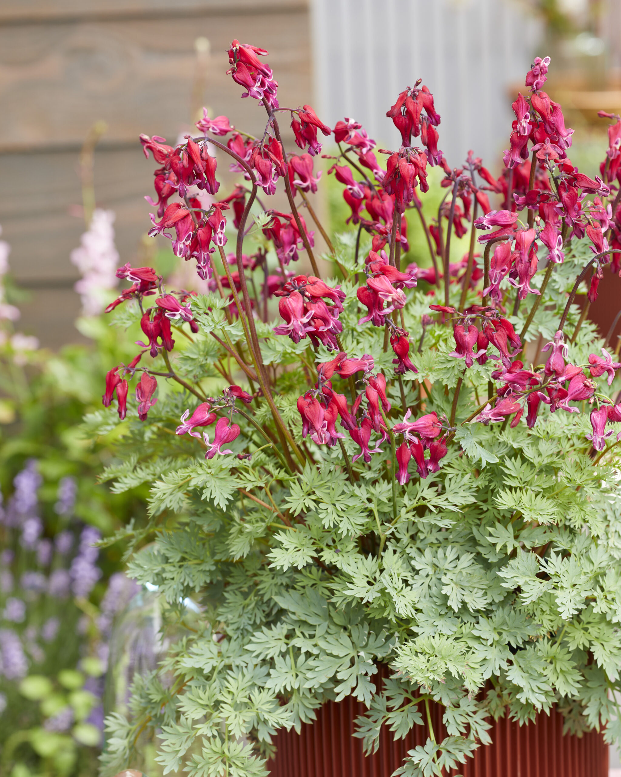 Varying from compact mounds to stately border plants, Dicentra prefer full sun and well drained but moisture retentive soil. Dicentra make compact mounds of foliage with fragrant flowers. The Hearts variety Valentine has stolen our heart with its attractive foliage and red and white flowers. The Hearts series were bred in Japan by Mr. Shiozaki.
