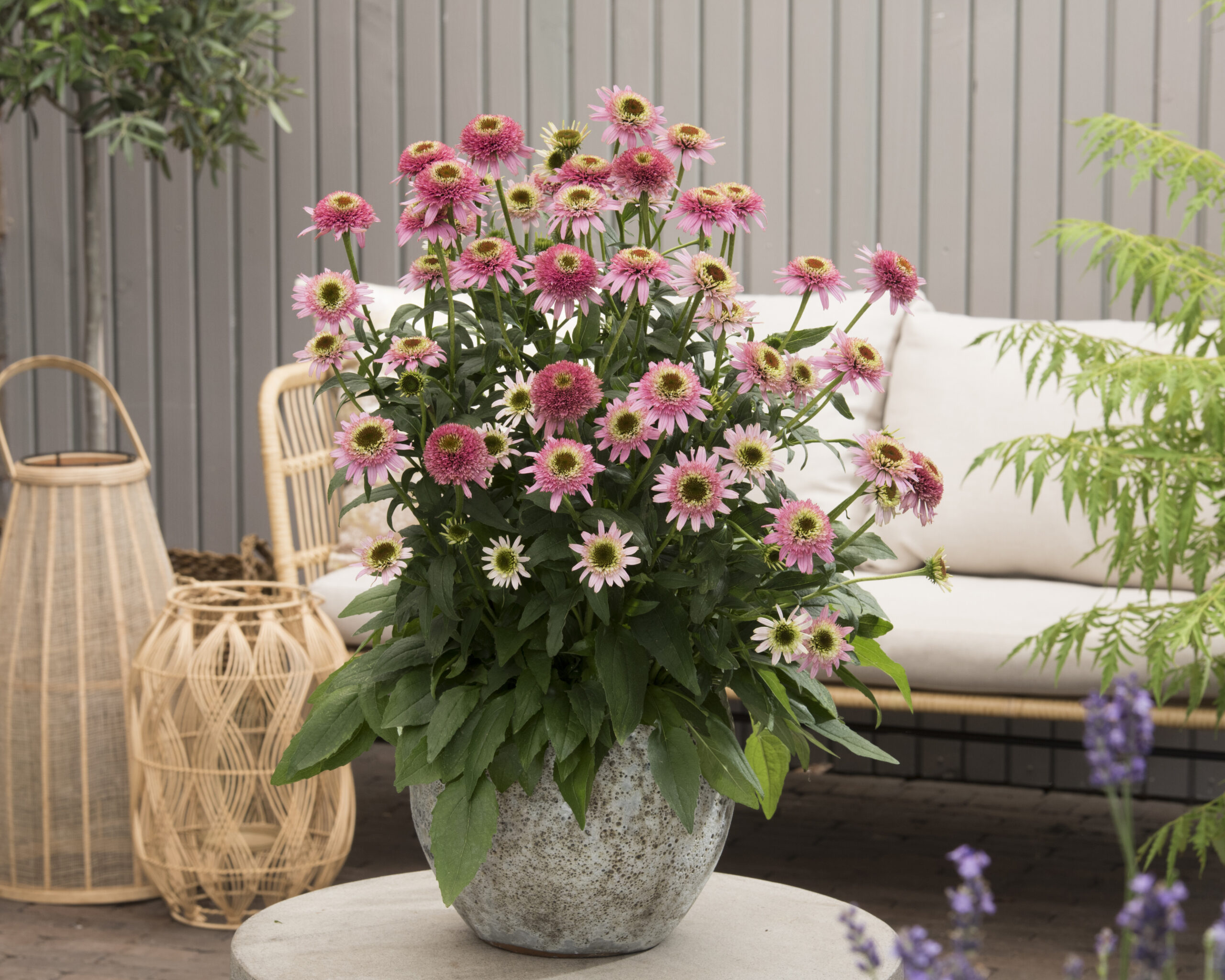 A selection of varieties that we consider to have the best combination of plant habit and flower colour and form. Echinacea are best overwintered to allow the plant to bulk up and fill the pot, but variety choice is critical to achieving a good result.